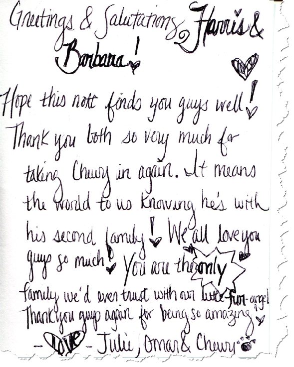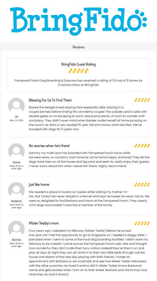 I believed many others felt the same, so twenty-one years ago I decided to offer "in home" day care and boarding. The dogs that come to us share our family life just like our own dogs, which means plenty of love and attention and no kennels. Plus they have a large, fenced-in back yard to run and play in with direct access to the house.